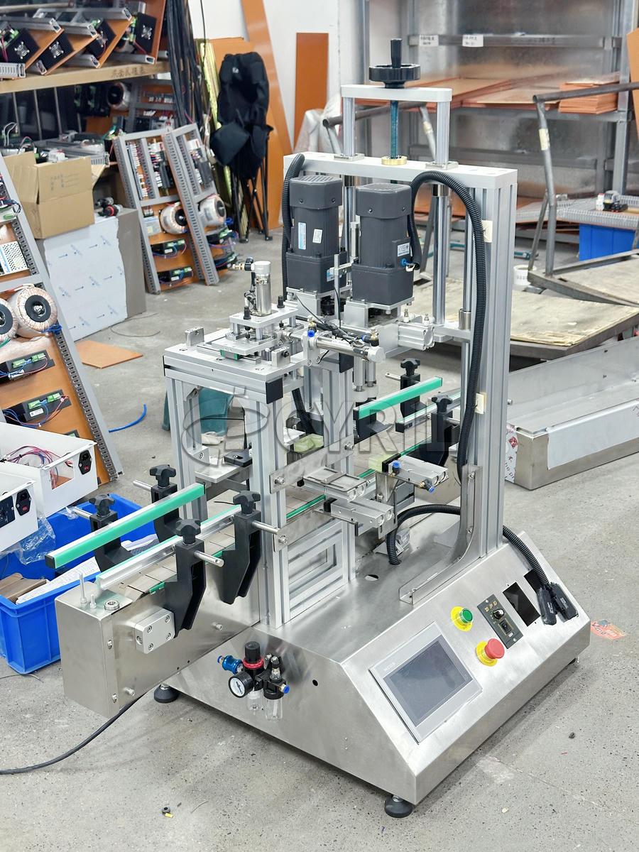 The desktop four-wheel capping machine combined with a capping machine is a compact and efficient bottle cap packaging equipment suitable for small to medium batch production scenarios, and is especially suitable for the capping needs of bottled products in the cosmetics, food, daily necessities and other industries.